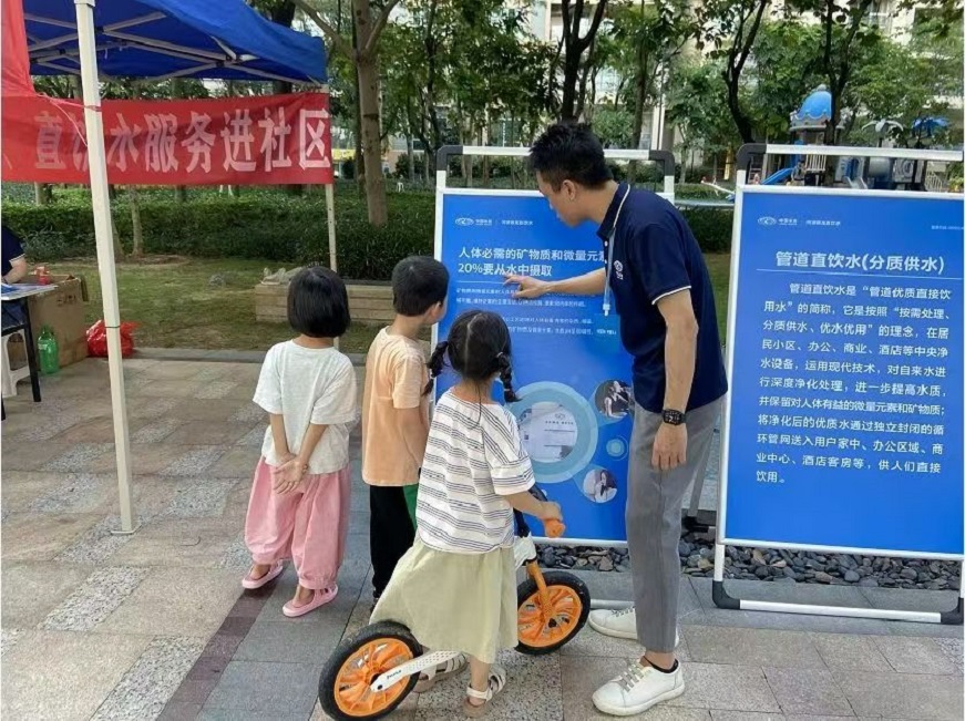 在做好宣傳節水知識的基礎上,志愿者們上門為社區居民提供了貼心的供水服務,活動現場耐心解答居民們關于供水水價、繳費方式、水質水壓、分質供水等方面的業務。同時向居民們介紹了“河源市水業集團發展有限公司”微信公眾號、“指尖水務”APP網上營業廳等便民服務方式,讓居民們能夠更加方便地了解供水信息以及業務查詢、繳交水費,享受到更加便捷、高效的供水服務。