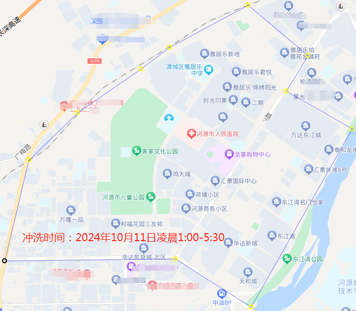 2.降壓或停水區域:新江一路至三路片區、黃子洞村片區、新塘村片區、白嶺頭村片區、豐源新村、高塘村片區、雅居樂明珠城、碧桂園未來城、三鳥市場、西一路至五路東西片區、火車站站前片區等。(詳見附圖1)