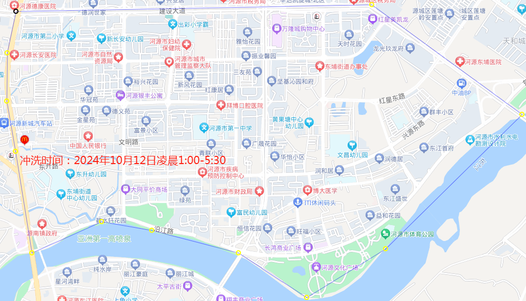 一、河源大道北以西麗日廣場至東源高速出口區域供水管道沖洗