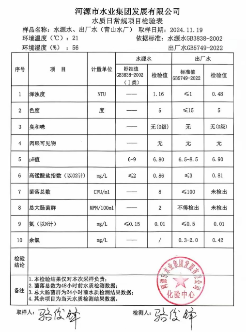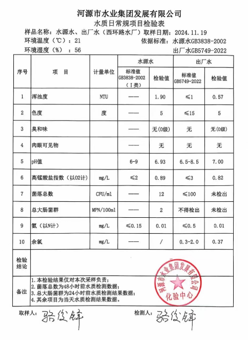 2024年11月19日水質(zhì)檢驗報告 ???